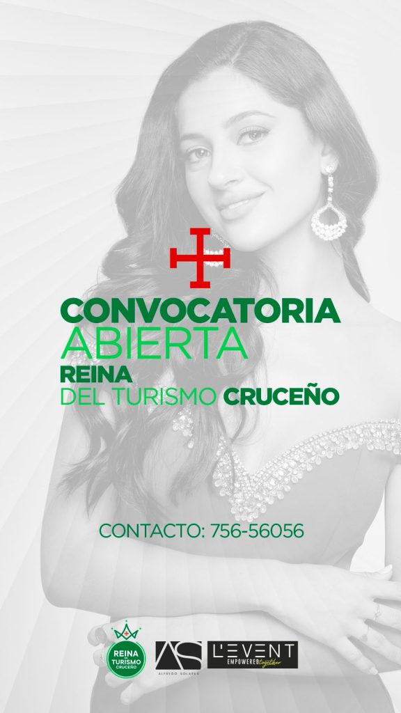 Priimera versión del Reinado del Turismo Cruceño. Con el fin de crear una mayor promoción de nuestros destinos, además de nuestra cultura, música, artistas, artesanos, tradiciones y gastronomía a lo largo del año, es que se busca una reina que realce y dé voz a la industria del turismo cruceño que tanto lo necesita. La convocatoria continúa abierta para señoritas entre 17 y 25 años, que deseen formar del selecto grupo de candidatas. La fecha de presentación oficial será el jueves 26 de agosto, mientras que la final se tiene fijada para el jueves 11 de septiembre. Viajes y visitas a lugares turísticos. Además de actividades deportivas, solidarias y una noche de títulos previos especiales forman parte del calendario tras la corona. La primera versión del Reinado del Turismo Cruceño, promete un contenido especial para los medios, redes sociales y también el público asistente a cada una de las actividades. *Contacto:*Alfredo Solares 75656056