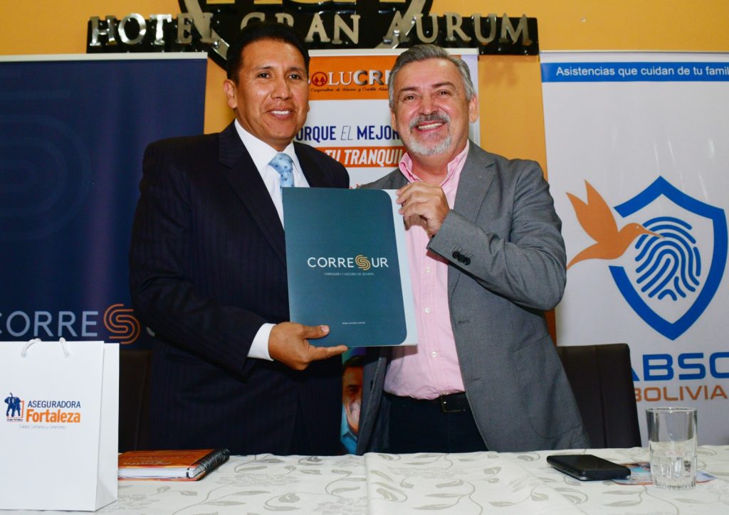 El lanzamiento estuvo a cargo de Marco Antonio Gonzales Angulo, presidente del Directorio de Solucredit San Silvestre; Carla Moscoso Delgadillo, Gerente General de la cooperativa Solucredit; Rubén Darío Moreno, Gerente Comercial de la Compañía Aseguradora de Vida Fortaleza; y Sandra Vigueras gerente comercial de Corresur, corredores y asesores de seguros.